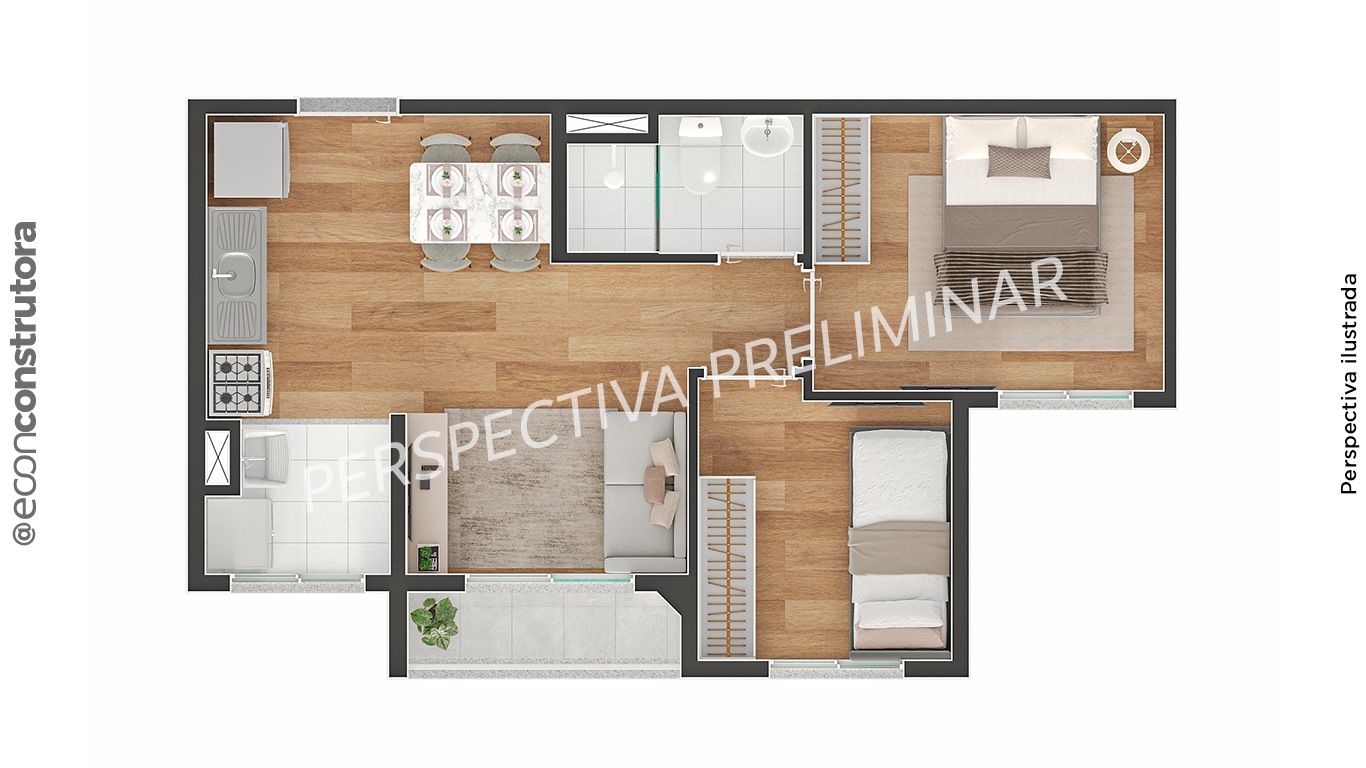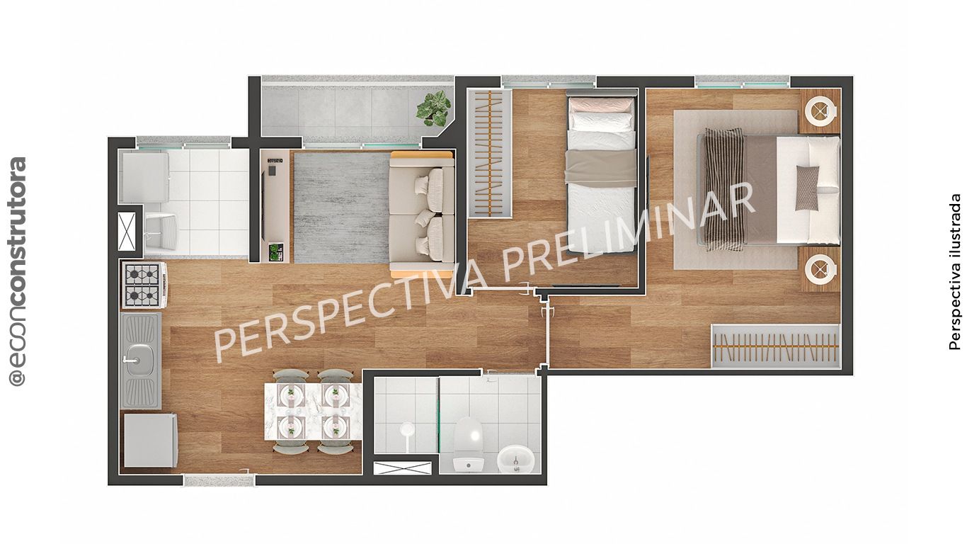 • Tipologias: 2 dormitórios com varanda