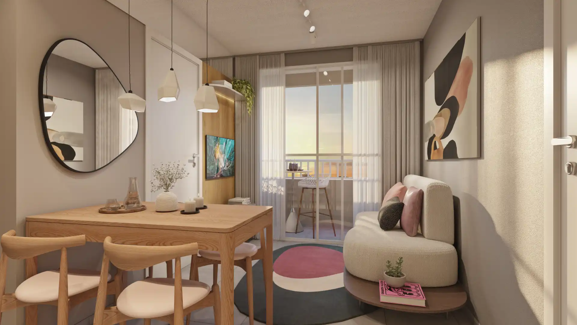 É um formato pensado para famílias pequenas ou quem está comprando o primeiro imóvel e precisa de praticidade.
