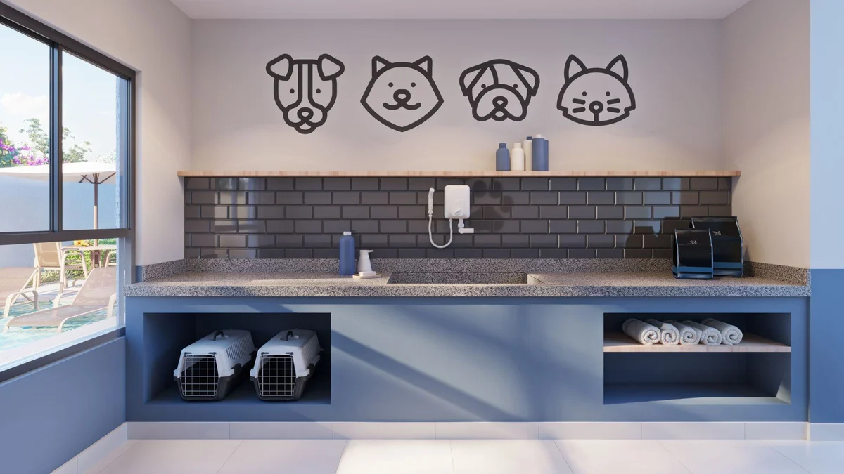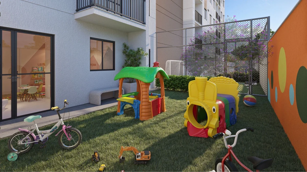 Academia moderna, Bicicletário, Brinquedoteca, Campinho, Coworking, Churrasqueira com Lounge, Espaço Delivery, Lavanderia Compartilhada (OMO), Mini Market, Fire Place, Pet Care, Pet Place, Playground, Piscinas Adulto e Infantil, Pomar, Rooftop com Espaço Gourmet e Praça Multiuso, Solário e Salão de Festas.