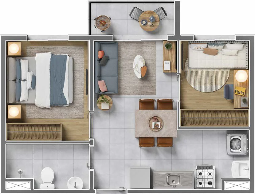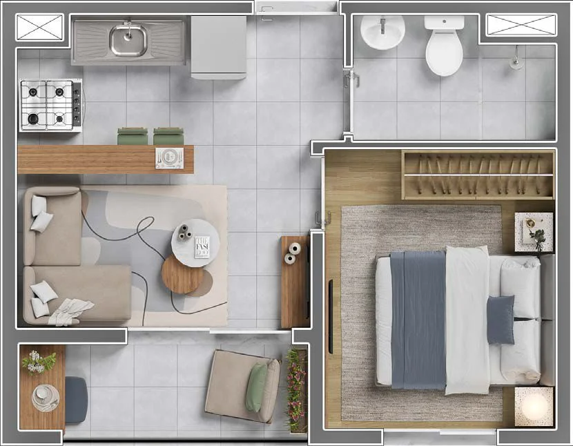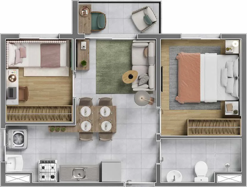 2 Dormitórios (36 m²) — ideal para famílias que buscam mais espaço.