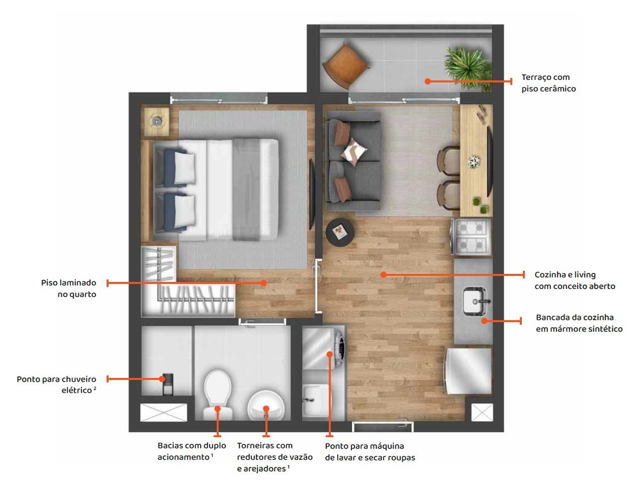• 1 e 2 Banheiros