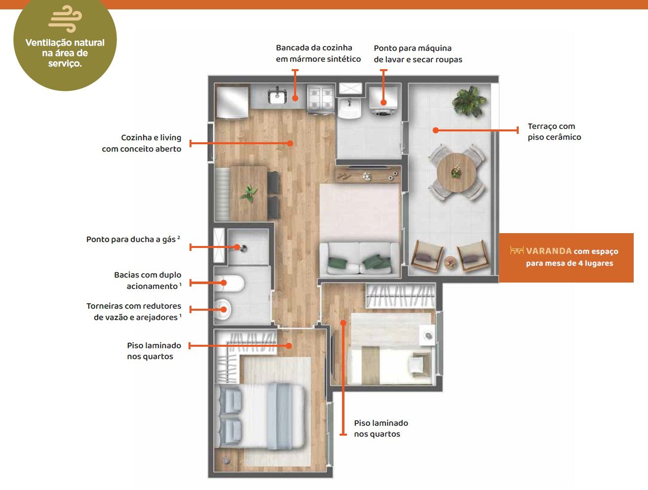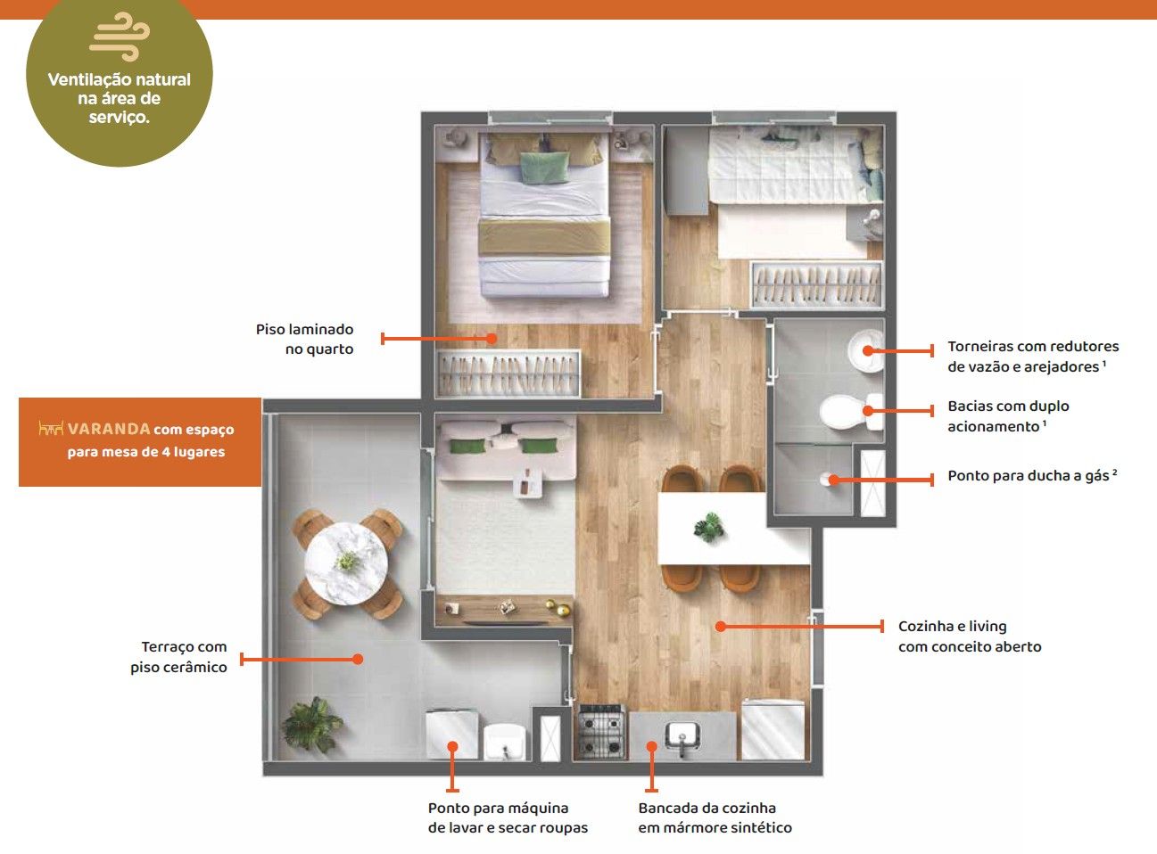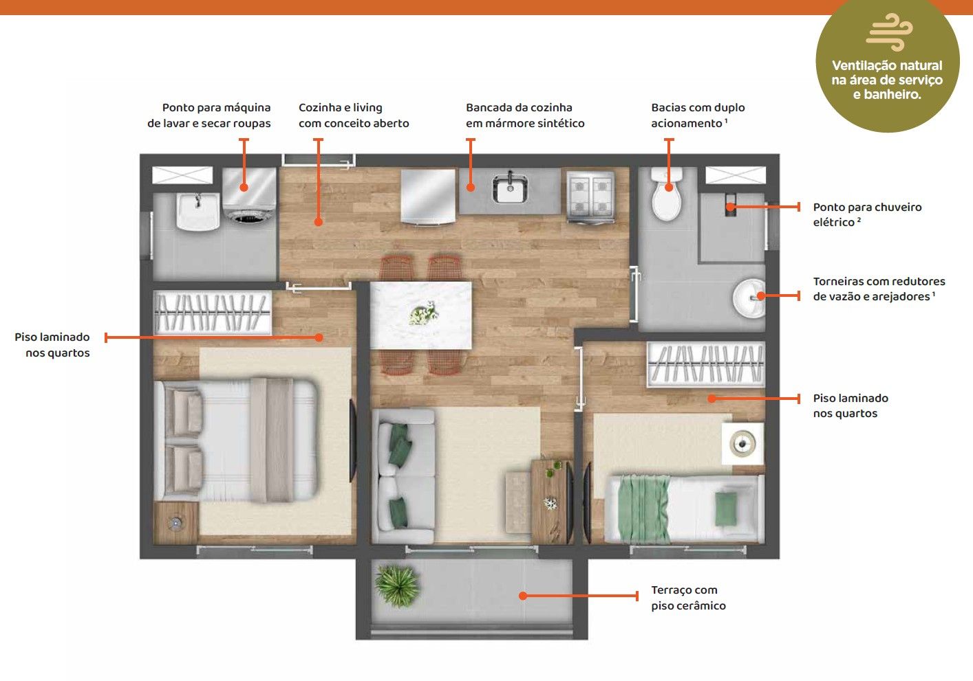 • 🚿 Diferencial: Banheiros com ventilação natural (janela real, sem exaustor barulhento!)