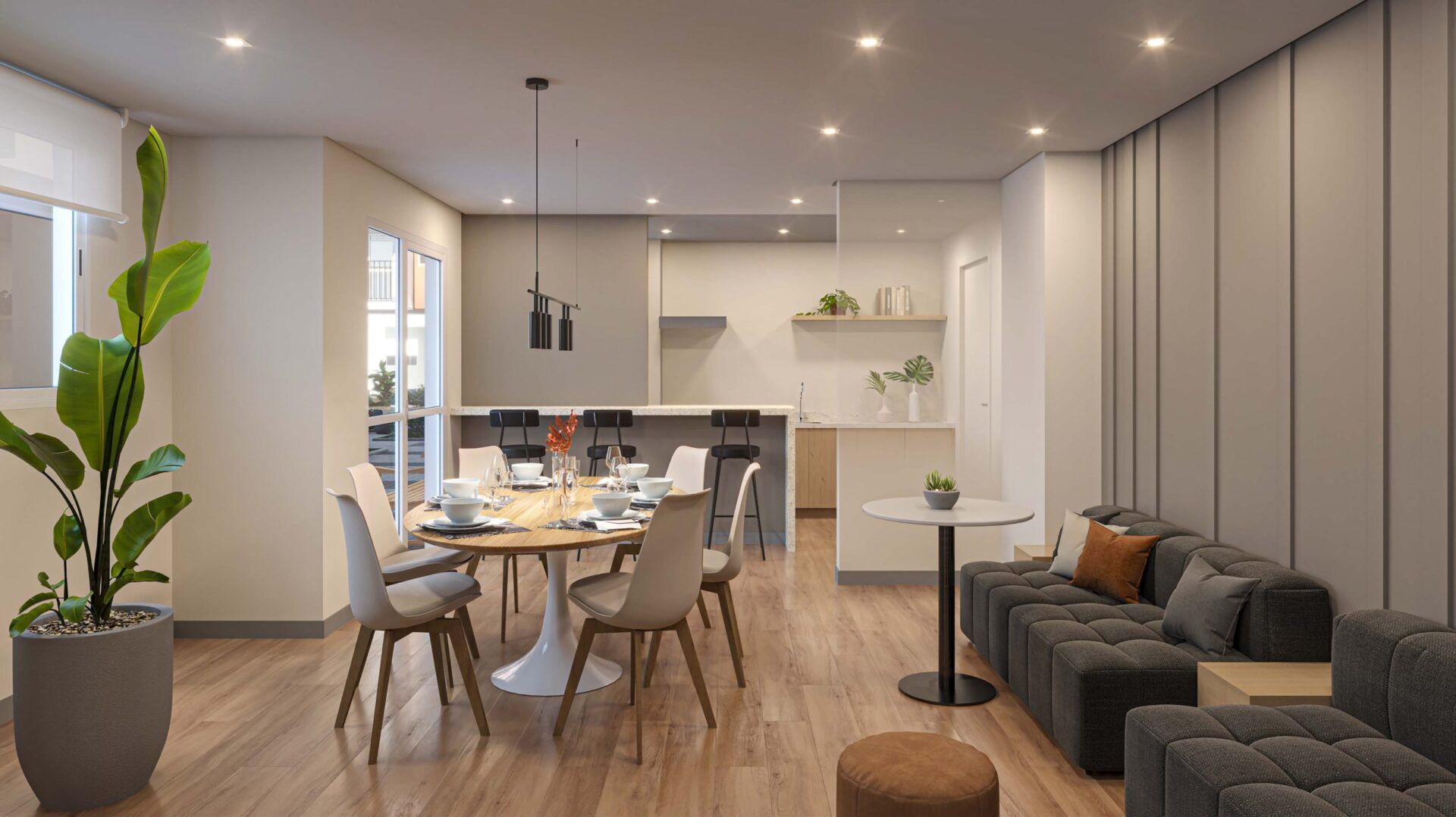 Trazem cozinha integrada ao living, acabamento moderno e piso laminado nos quartos. Perfeitos para quem busca praticidade, conforto e o primeiro lar com estilo.